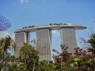 Yes, no matter how you look at it, we tend to see a three-pillared ironing board structure. The pillars are the hotel rooms, and the ironing board is the restaurant and infinity pool that sits across the top of the pillars. By taking the Dragonfly Bridge out of the Gardens by the Bay, we connected to the bridge that took us right through the upper portion of the hotel complex, and continued to the Shoppes at Marina Bay Sands.