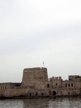 There were seven tours offered here today. They ranged from 3 ½ to 7 hours, and cost from $65 to $150. Two of the longer trips went out of town to ruins with lunch. Been there, done that. Shorter ones were to the Corinth Canal, wine tasting, and a local walking tour that included going to the Palamidi Castle, built in 1714. It is 700 feet above the harbor, and has at least 850 stairs to the top. It is three castles connected to each other by vaults, corridors, or secret passages. Eventually, it became a horrible prison.