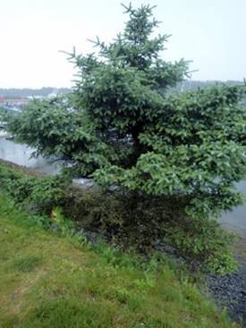 At least we knew to pack umbrellas, and wear our waterproof coats and boots. Leaving the big camera on the ship, we packed the waterproof one. We covered most of the town within a couple of hours, seeing the Kodiak National Wildlife Refuge Center, Holy Resurrection Church, the oldest Russian Orthodox church, and the Baranov Museum. Going over to the harbor, we passed by a monument where we watched bald eagles flying across to the parklands of Near Island. Right alongside this wharf was the Star of Kodiak, a fishing vessel turned into a fish processing plant. Once again, we could see water coming from this ship with possible food for the birds and sea lions.