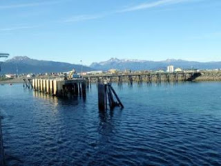 The main landmark of Homer has to be the "spit", which is a 4 ½ mile long strip of land that juts out in Kachemak Bay. The popular theory of how this spit formed is that it is the remains of a glacial moraine, and re-shaped by ocean currents. In the center of this land, is a harbor protected by land on both sides. It is almost hollowed out, with the fishing boats about out of sight as we entered the bay. And like yesterday, there is a 20 foot tidal change here. There are 875 stalls in this harbor, part of which is a commercial fishing vessels.