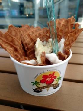 Actually, we did stop at a kiosk to purchase a waffle cup ice cream treat. The extra crispy waffle cups were being made right there, and filled with gelato, it was really good. Expensive, but good.