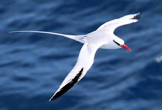 A smaller cousin to the red billed tropicbird is the white-tailed variety