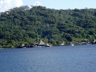 Somewhere around 7 million years ago, the island of Bora Bora came into existence. It is the oldest of the Society Islands, and part of the Leeward Islands. Located about 170 miles from Tahiti, is has been described as paradise on earth. We tend to agree that the lagoon is the most beautiful in the world with water ranging from turquoise blue to deep sapphire. The island itself is 5.5 miles long, and 2.5 miles wide. But the surrounding lagoon is 31 square miles, three times larger than the land mass. The entrance to the only pass, Te Ava Nui Pass, is 180 feet deep with gray sharks and barracuda feeding there. Two major peaks can be seen on the island. They are Otemanu at 2385 feet in elevation, and Pahia at 2168 feet high. The road around the island is only 20 miles. About 9000 people live here, and are employed mainly in the tourism industry. A few marae still exist here, but most of them were destroyed by missionaries 100 years ago. This entire island also houses relics from World War II, although much of it has been consumed by the jungle.